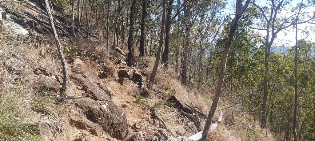 Once back at the trailhead, I then turned onto the Yul-yan-man track towards Mt Tibrogargan. It’s only 6.7 km, which I thought would be a breeze. For some reason, its grade 5 classification3 didn’t phase me in the slightest. I’ve done multi-day trips on rough trails before, how hard can it be?