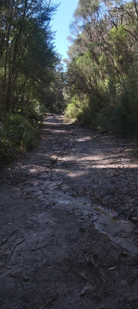 I’m realising that I can get rather impatient when I’m on trail (shocker, I know!). This first section from Elliot Ridge to Blanket Bay is listed as 12 km. Even going at a fast pace it’d take me a minimum of 3 hours to complete it. And yet an hour in I found myself thinking “why am I not here yet?” Exactly how delusional can I be? I signed up to walk 23 km today, that takes time. It just happens that most of the time on this first stint would be taken up by navigating through muddy fire management trails.