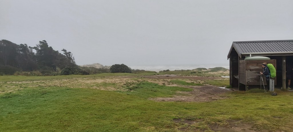 Not only after arriving, I was joined by several other walker who had also started from Te Paki, including Marlon from Canada, Mirjam from Germany, and Vadem from Belgium (I didn’t get everyone’s names, sorry!). Marlon had brought some rope with him (in his words, he picked it up to take it out of his pack, realised how light it was, and kept it in) which he strung up as a makeshift clothesline in a vain attempt to dry everyone’s clothes. It’s the thought that counts I suppose. As any good hiker is obliged to do at camp, we spent the evening sharing stories from our various adventures before settling in for the night right before more rain hit.