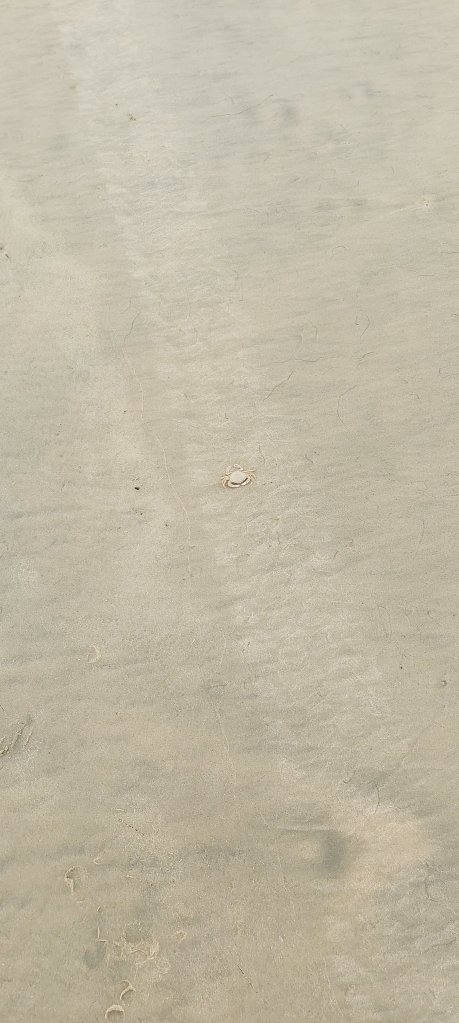 Still carrying the blisters I picked up yesterday – albeit feeling a lot less stiff – I wrapped them up with a mixture of bandaids and hikers wool and hit the beach in what was perfect walking conditions. The rain system that had been following us for the last couple days had dissipated, leaving us with a nice layer of cloud sheltering us from the heat. That didn’t change the fact that there was still nothing much of interest to see, the monotonous journey only interrupted by a crab who wanted to have a go at me.