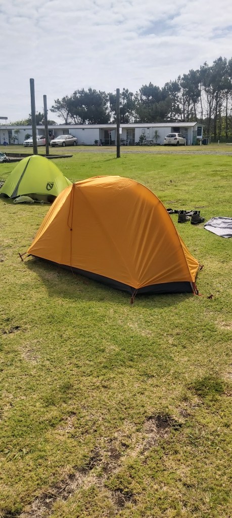 As has been the theme for this walk so far, it was pretty uneventful until I reached camp at 1:20. I was welcomed warmly by the staff and allowed to set up my tent before paying. By this stage the sun was out in force, so I also laid out a bunch of my wet stuff that hadn’t had the chance to fully dry since day 1. The good times continued as I then learnt that this campsite lets Te Araroa hikers stay for half price! So yeah, I definitely made the right call staying here.