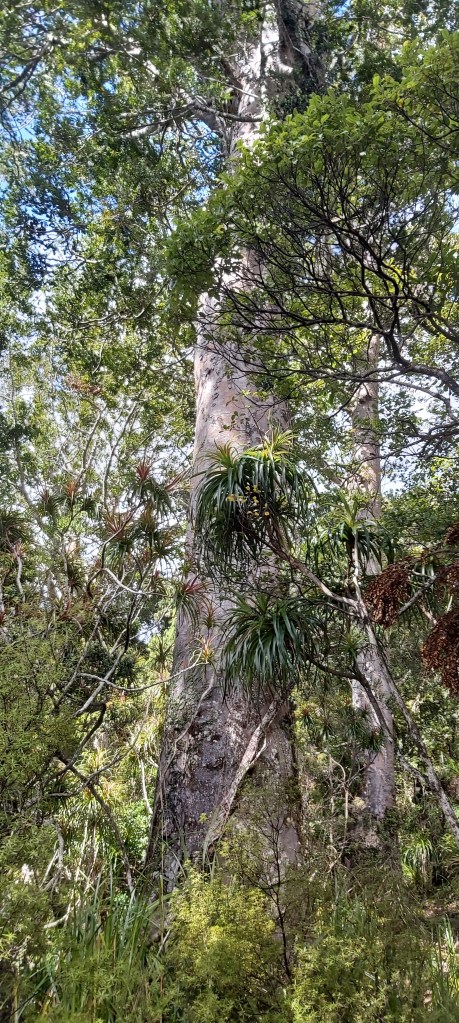 Nearing the top of the ridge, the track turned into a well manicured gravel path, flanked on both sides by giant kauri trees.