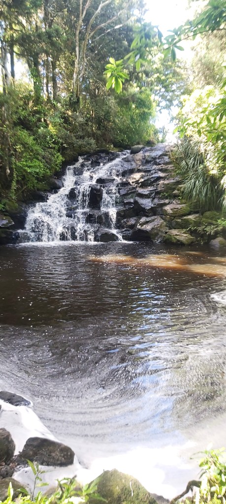 It reminded me a bit of the track conditions on the Carnarvon Great Walk; narrow path flanked by tall grasses on either sides. The difference this time is that I didn’t need to be worried about snakes, although I was frequently having to dodge thirties and stinging nettles. The sun was out in force as well so I heated up pretty quickly, relief only coming when the trail descended into these forests, passing by peaceful brooks and even a waterfall.