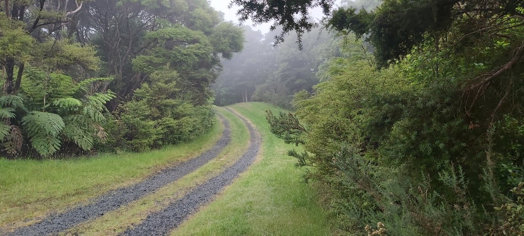 It transitioned to gravel as I climbed as the weather settled into a steady rhythm of very light rain that had me constantly putting on and taking off my rainjacket’s hood. When I hit the Langsview Track I slowed down significantly as I got hit with slippery, muddy slopes. This wasn’t in the script which for me can be a big deal. In Puketi Forest, I knew the track was going to be difficult but I wasn’t mentally prepared for just how difficult it would be. On Bream Head it was the opposite, knowing it would be a tough climb before leaving camp. The difference? I enjoyed Bream Head and hated Puketi Forest (I’m coming to terms with it). I thought this track would be easy going and easily completed. The sign starting it’d take me 3 hours to do 6.5 km suggested otherwise, as did my initial experience of it. I tried my best not to spiral and put my focus into putting one foot in front of the other, pausing regularly to regain some strength and appreciate the forest I was in.
