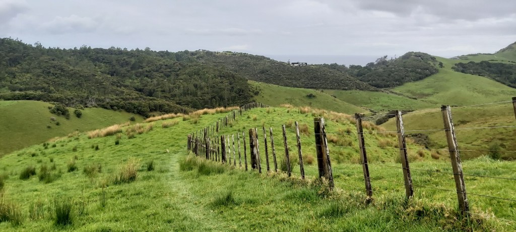 …then passing through pastures, saying g’day to some very chill cows, walking over some obnoxiously green hills.