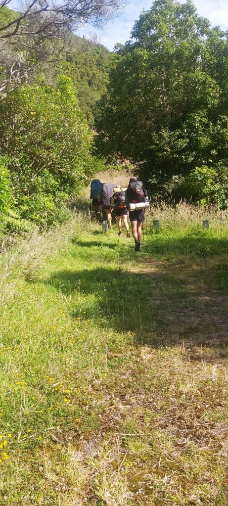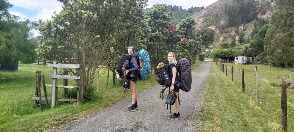 Tonight was be staying in an old church just before Waikanae proper. I must admit, I don’t k is who actually runs the place or if the church is still acting as a, well, church. What I do know is that when the three of us arrived we had a bit of a dilemma. 3 people with 3 backs, but carrying 5 packs. This didn’t phase the girls, however.