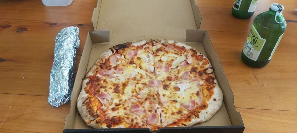 The church was covered in mattresses that we could use for our sleepy time. Sharing this space with us would be Julien (last seen on the ridge above Pakiri Beach) and Leo from Israel. Melly and Matt arrived surprisingly quickly much to our delight because that meant we could order dinner. Namely, pizza. A lot of pizza. Plus garlic bread and ice cream, of course.