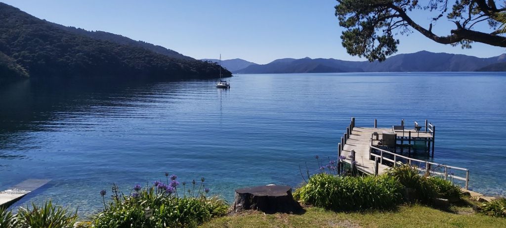 Towards the far end of the inlet is Furneaux Lodge, another one of these private resorts for the more boujee traveller. One of the comments in Far Out about this place is that it’s a nice place to relax and have a glass of rosé. So I did. It was yet another rest break after not much walking, but I figured if Matt and Melly weren’t worried, then neither should I.