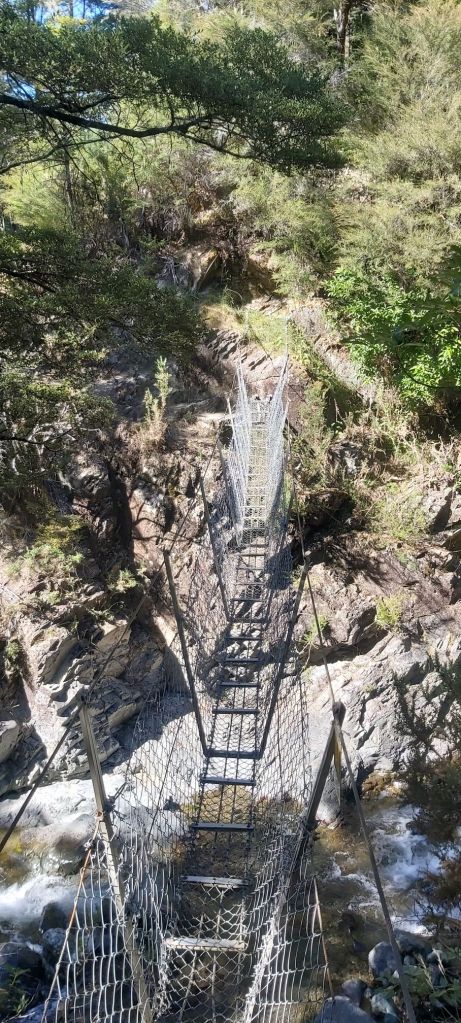 The next stint to Middy Creek Hut promised to be on the easier side, although not without first crossing another chicken wire swingbridge.