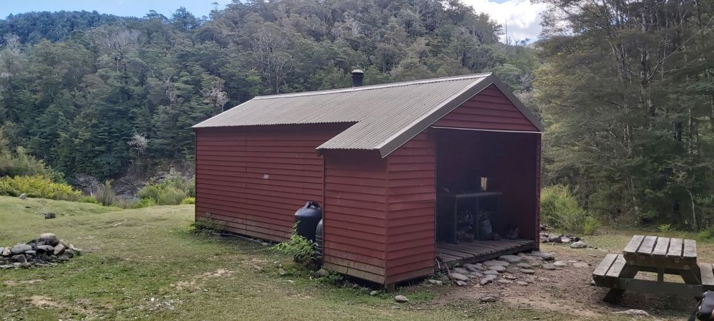 I believe most of the huts in the Richmond’s were originally built by the NZ Forestry Service, the predecessor to DOC, primarily to service their staff working in the park and hunters. Captain Creek has 6 bunks arranged in an L shape on the left wall, a wood stove, and a bench for cooking. I suspect many of the other huts I’ll come across will be of a similar design. To us, the only important thing about this hut that we cared about was its close proximity to the Pelorus River. After another quick dip and sandfly massacre, we had lunch up by the hut where the sandfly population was smaller. Although I had packed 12 days worth of dinners, I didn’t have as much for lunches. Might need to get a bit creative with them in the coming days.