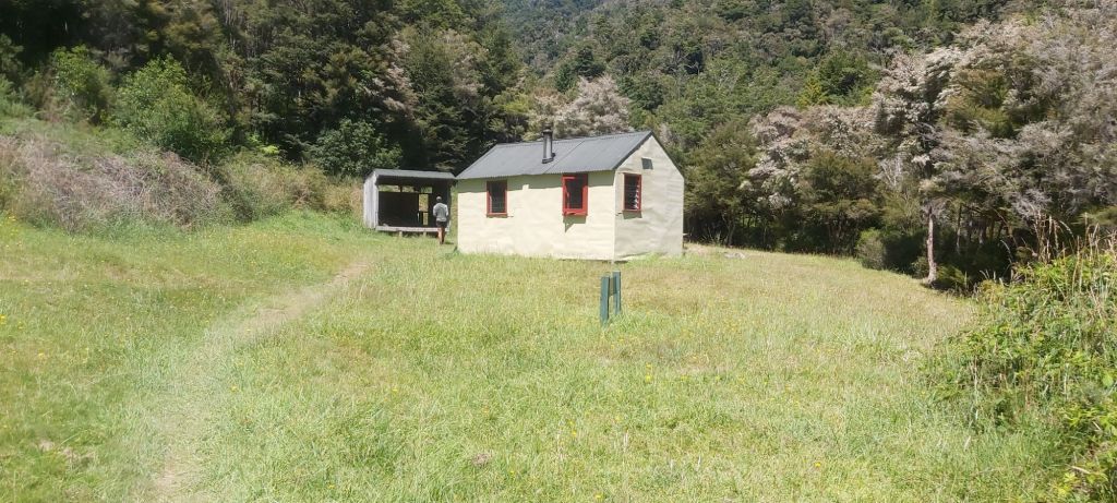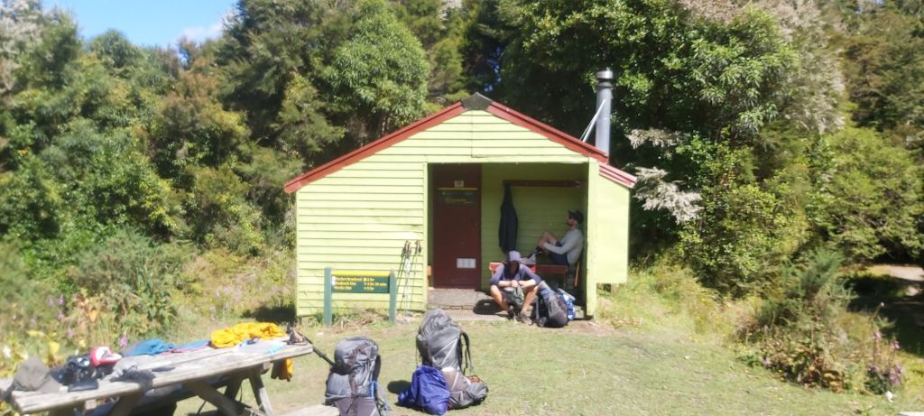 With our energy stores replenished from lunch, it was time to continue the ascent just as slowly as we had begun it. I wouldn’t say it was any steeper than the climbs we did in the Tararuas, but the scale of this climb was much greater. There were barely any breaks, the occasional time when the trail did level off being swiftly used as a water break point. The distance to the hut on Far Out edged closer and closer, until at long last it just appeared out of nowhere right on the treeline.