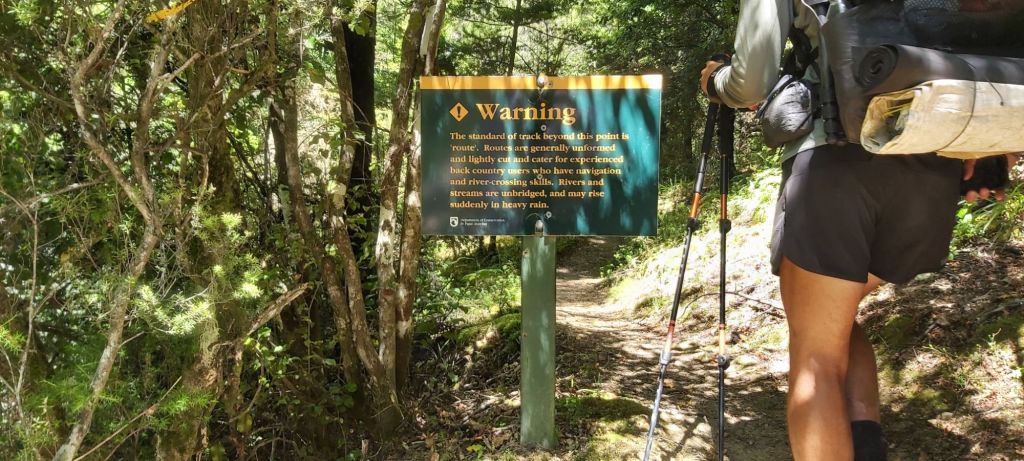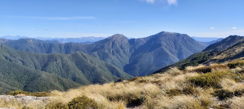 Occasionally the descent would be broken up by small sections of flat walking over treeless terrain. Oli mentioned that there is a particular mineral in the rocks that prevents anything bigger than tussock from growing here. Apparently back in the day a few mines were opened to get this mineral, including New Zealand’s first railway from Nelson, but they were never profitable.