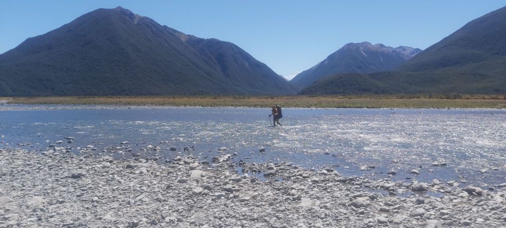 The trail is easy to follow for the first bit to Klondyke Corner but after that it was a case of choosing our own adventure. The trail notes told us to follow the true right bank of the Bealey River going past “occasional marker poles” whose locations remain a mystery to me as I didn’t see a single one the whole time. Following the river was easy enough, as was the crossing of the Waimakariri.