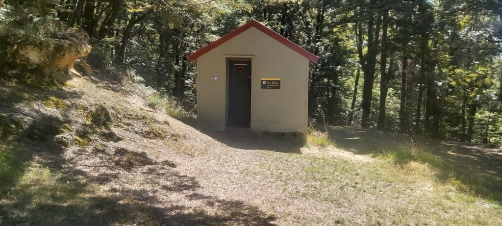 According to DOC, this A frame hut is supposed to have 2 bunks. It didn’t have any. There was a bench at the back that I really hope DOC isn’t counting as a bunk and floor space for 4 people at a pinch. The high roof made the hut feel quite roomy despite the small floor space. A non-TA Dutch hiker was already here when we arrived, but there was still room for Oli and I to sleep there too, with Melly choosing to sleep in her tent and Matt opting for a starry roof. A small stream was nearby acting as a water source for the hut, with another shelter up a hill on the other side. This one actually had bunks but felt rather damp and dingy compared to the A frame.