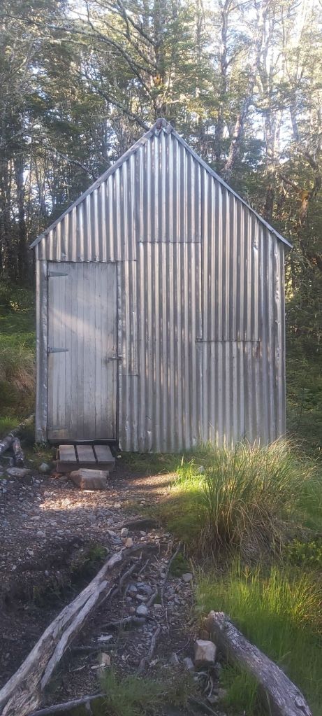 The views improved once we got above the trees, manoeuvring through the tussock and mud in another round of “the floor is lava”. Even with the slow morning I was feeling pretty tired. With the clock now approaching 6pm, this was the fourth day in a row with a late finish to my day. The problem I find with these late finishes is that I never have the time to relax at the hut/campsite/hostel. Instead I’m rushing to get my tent set up, get dinner cooked and eaten and get to bed. There’s no time to just stop and do nothing before these tasks which I find is a very enjoyable and somewhat necessary part to my multi-day hikes. If I don’t get this time, I’ve found myself becoming quite tired and irritable the following day, meaning I can’t admire the environment I’m in nor do I feel like interacting with my friends all that much. Some hikers are able to wake up at sunrise and walk for 12 hours a day everyday without an issue. I can’t. I like and need my rest. Tonight, that rest would be provided by, at long last, a tiny hut.