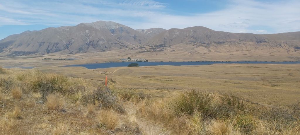 Starting off it was more of the same dry, grassy scenery that made up most of yesterday, but as I rounded a bend near the end of the Hakatere Conservation Park, I was met with a gorgeous view looking towards the Southern Alps with Lake Emily in the foreground.