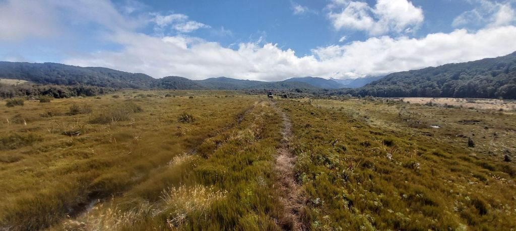 Another thing I had going for me was my pack was feeling nice and light, now with only 3 days of food remaining. Additionally, I weirdly had a lot of energy going into the morning. Normally it takes me a while to fully wake up, but today I was raring to go. Don’t get me wrong, the climb was still taxing and I stopped regularly to catch my breath. In the end it took a bit over an hour to finish the climbing and start descending down a slippery track covered in an old favourite substance of mine. The red clay had returned, but I was not about to fall victim to its traps. Mercifully this was only a short section of trail and it soon returned to a classic wet forest track. Well, that was for a few kilometres, then the forest ended and I entered an ocean of tussock.