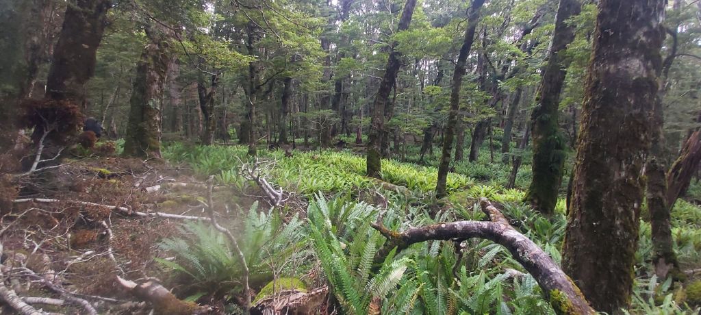 Bog gave way to forest which was more of the same scenery as I’ve seen in countless forests up and down the country. The one thing I did notice about this forest is the lack of birdsong I could hear. My guess is there hasn’t been much trapping done in here so introduced predators still run the show. Hopefully DOC can get around to doing something about it to bring some native birds back to this forest. With nothing to hear and not much to see (apart from some lovely fern groves), all I could do was keep marching on.