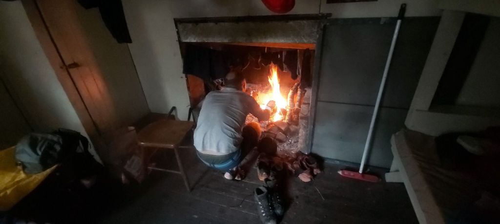 That meant another night on the floor in what is my second last hut on the trail. To help dry out our shoes and warm up the hut, Oli had started a fire in the hut’s open fireplace, adding to the cosy vibes the building was giving out.