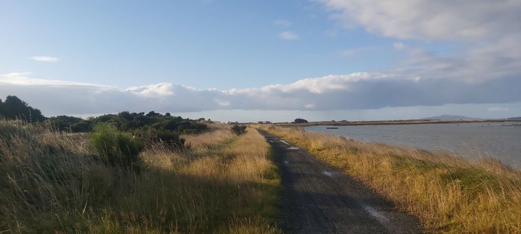Starting off today would just be the original three. Oli wanted to run to Bluff, just because. Sean, yet again, was being an absolute angel and agreed to take his pack. The three of us made bets on when Oli would catch up with us. None of us came close thanks to Oli sleeping in, eventually reuniting (briefly) around 8:45. He sped off, leaving the three of us on a lovely gravel cycleway next to an estuary.
