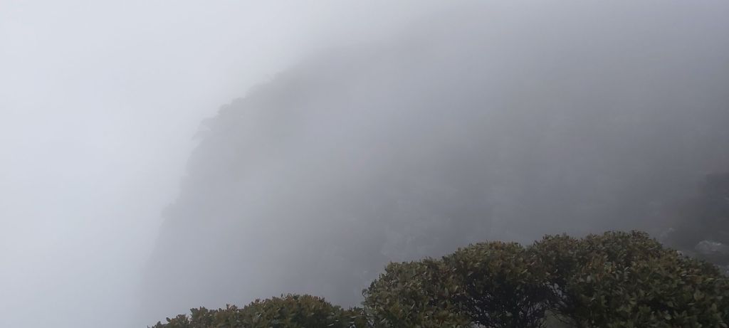 As expected, the top of Signal Peak was shrouded in cloud. Add in the cold wind blasting us in the face, we kept moving, making a short descent before beginning the second climb up to Mt Abrupt.
