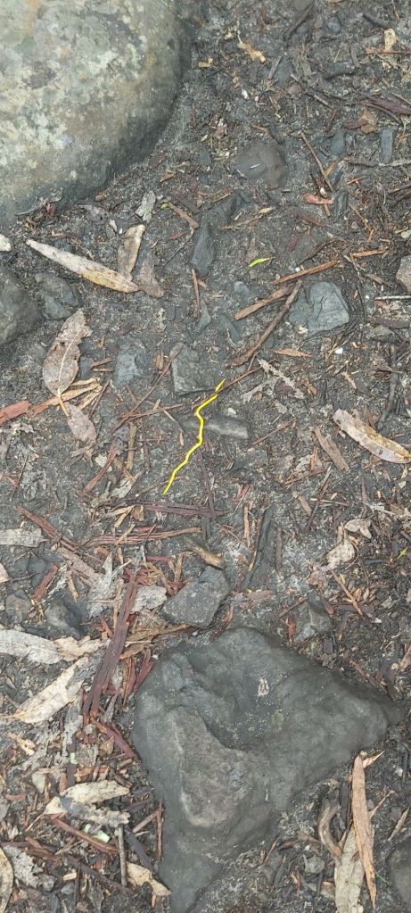At least it wasn’t raining, although the humid air brought out a rather unique creature, the canary worm. I’m not sure what it’s proper name is, but as you might expect from something called a “canary worm”, it’s a worm that’s bright yellow. In keeping with other brightly coloured beings in the animal kingdom, it’s poisonous. Just a little PSA if there’s any early birds reading this.