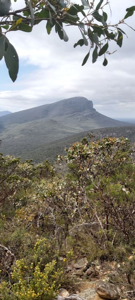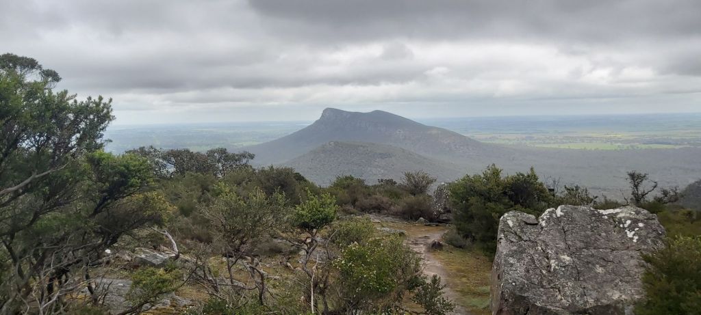 The sight of expansive mountain ranges, rock formations, and lakes that we had seen further north were replaced with an equally expansive plain of farms, with smaller peaks also visible in the distance. It gave me more time to reflect on the journey over the last 7 days, from that first climb up the slab at Mt Zero, the freezing night at Gar, reuniting with Matt in Halls Gap, and then scrambling up and over Mt Rosea, Mt William, Durd Durd, and countless other peaks throughout this park. My feet and joints may have been killing me, but I had still travelled close to 160 km in a week under my own steam.