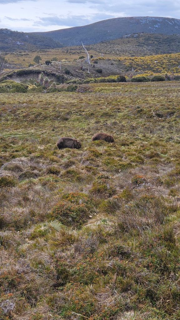 Barely 100 metres in, still in sight of the road, two wombats were grazing right next to the trail.