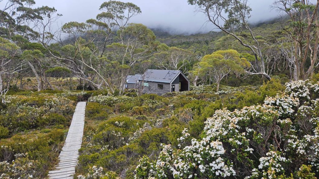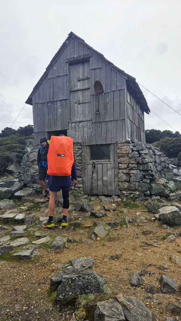 In the meantime, we climbed up a bit further to arrive at Kitchen Hut, a historic shelter that these days is only used in emergencies and unofficially as a pack storage for Overland hikers that want to go climb Cradle. A short shower came down on our approach to the hut which did make me a tad concerned for the climb, but it passed over without much damage.