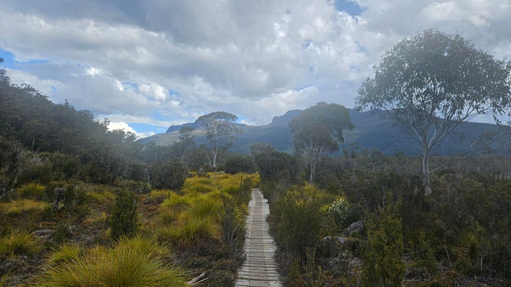Only 4.5 km remained on our journey, and for one of only a few times this trip, we all walked together. Soon the forest opened up into more buttongrass meadows, walking along more of that sweet, sweet duckboard.
